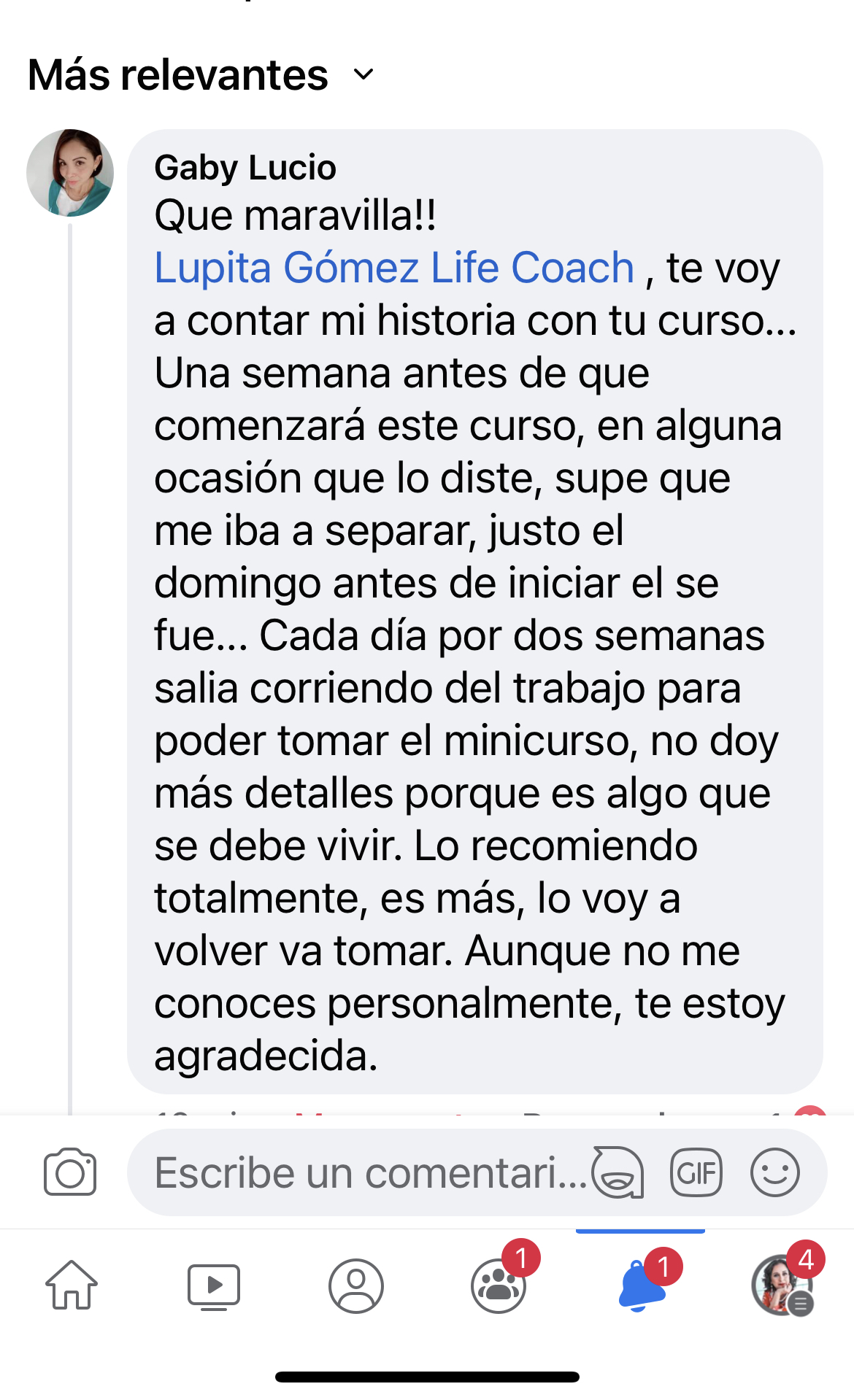“No puedo creer lo claro que entendí algo que ni en terapia había podido ver. Tenía miedo a sentirme sola, no a estar sola. Hoy confío en que mi vida ya no depende de causas externas.” Gracias!!!